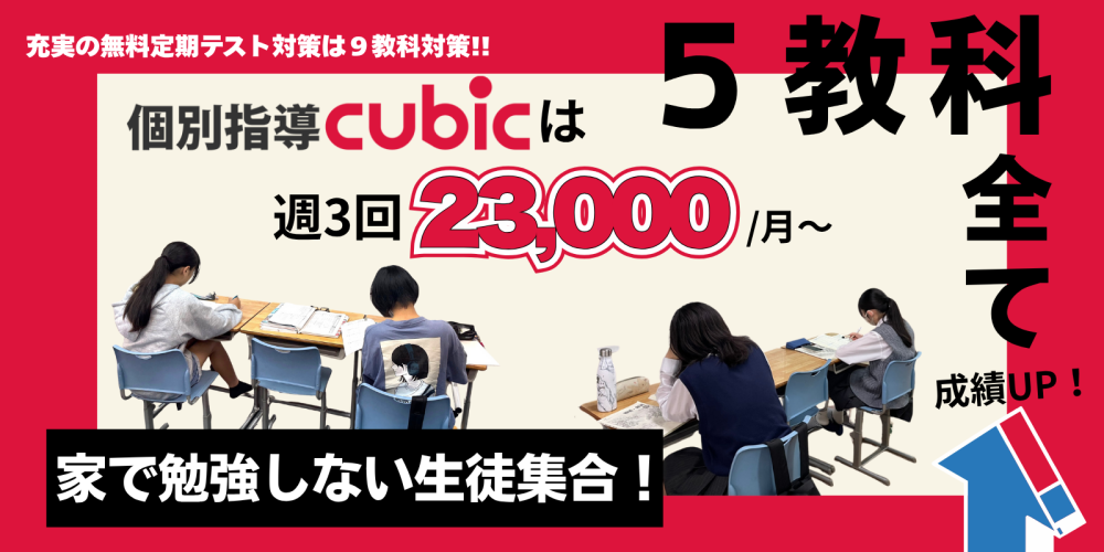 「宿題」、「提出物の期限を守る」、「テスト前のスケジュールを立てて勉強する」。 キュービックではこういったなかなかできない「当たり前」のことを、お子さまがキチンとできるように徹底的に指導していくことで成績をあげるお手伝いをしています。